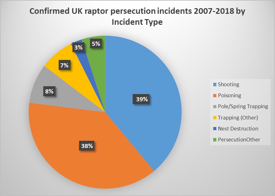 This RSPB Crime map (see here) details the persecution blackspots around the UK. You may be surprised to learn that some of the worst Raptor ‘killing fields’ are within our National Parks. North Yorkshire heads the list of top 20 blackspot Counties for persecution with over 10% of incidents, with Highland in Scotland the next worse. (recorded between 2007-18).